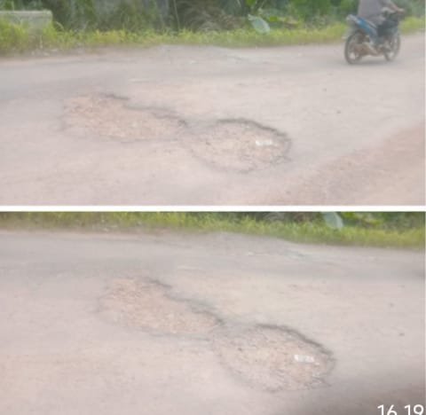 Pantauan di lapangan, Sabtu (21/03/2026) menunjukkan lubang-lubang menganga di badan jalan yang tidak hanya mengganggu kenyamanan, tetapi juga membahayakan keselamatan pengendara. Risiko semakin tinggi pada malam hari dan saat hujan, ketika lubang tertutup genangan air dan sulit terdeteksi.